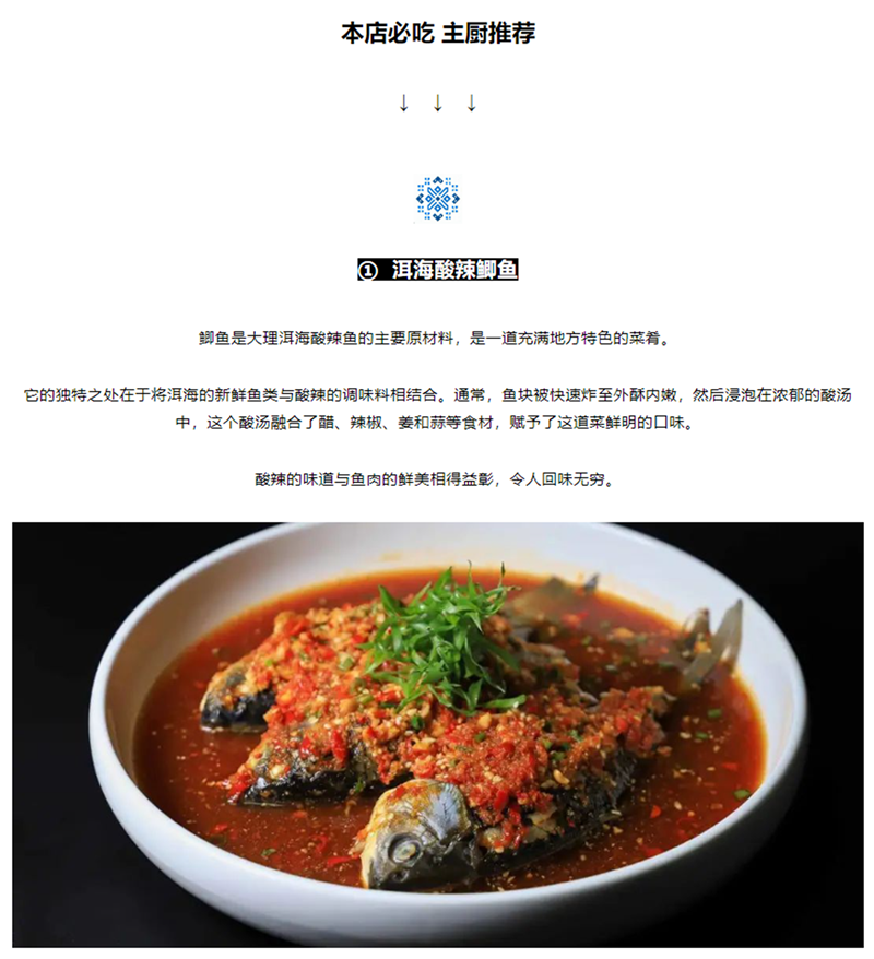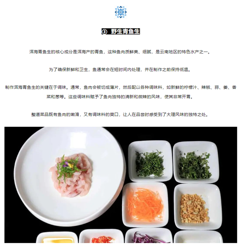 这种宴席源于白族人民对洱海的喜爱和对生活的热情,经过多年的发展和创新,已经成为大理地区最具代表性和影响力的美食之一。一桌洱海鱼宴通常包括几道甚至十几道菜品,而大理人在对食材的选择上,每一道菜都保留了其独特的口感和风味。