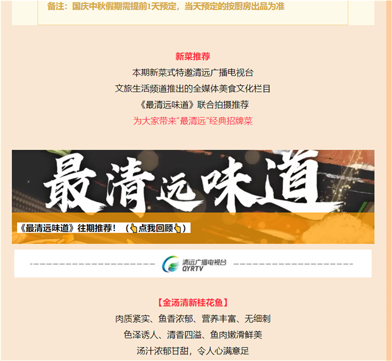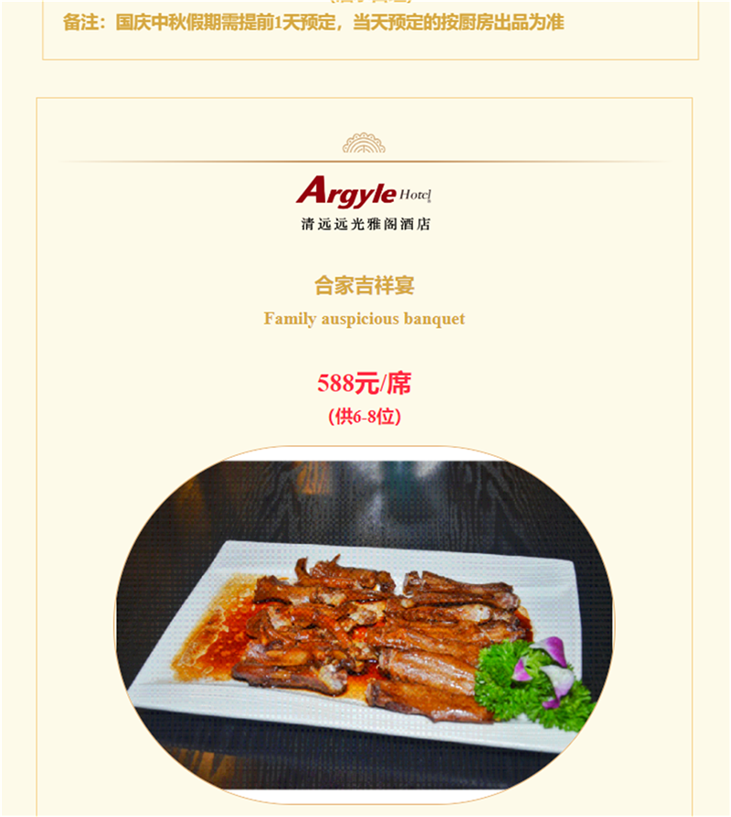 国庆中秋小长假,美食之约在清远远光雅阁酒店(雅阁酒店集团旗下成员酒店)。