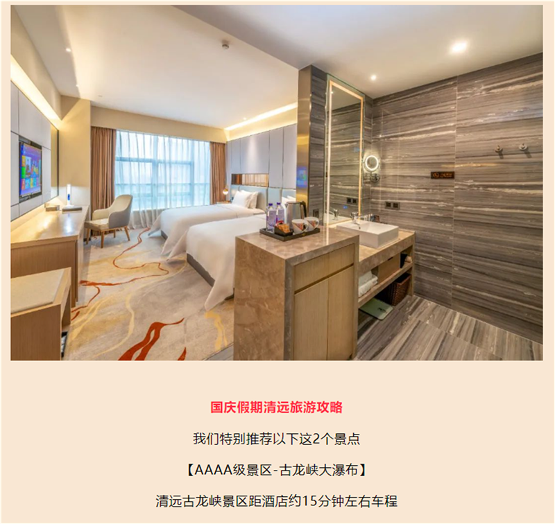 清远远光雅阁酒店(雅阁酒店集团旗下成员酒店)推出节日游玩套餐,喜迎中秋国庆。