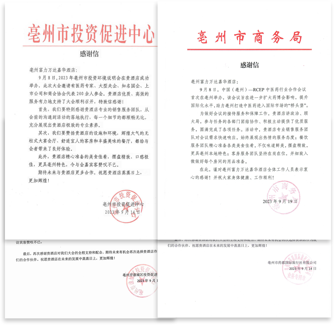 最终大会圆满落幕,亳州富力万达嘉华酒店凭借设计巧妙的会议空间、别具匠心的宴会佳肴、贴心温暖的会议服务和优质尊享的入住体验,获得了会议组织者及参会嘉宾的一致好评。以此次大会接待为契机,酒店将不断提高团队凝聚力与向心力,精益求精,砥砺前行,一如既往的为宾客提供品质出众的贴心服务,奔赴新征程!