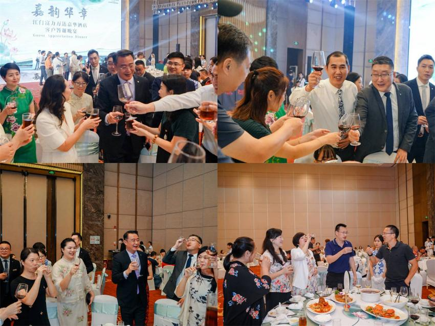 客户答谢会伊始,江门富力万达嘉华酒店总经理谢晟先生致欢迎词,感谢社会各界对酒店发展的大力支持及酒店两百多位员工的辛勤付出,使得江门富力万达嘉华酒店能够在过去9年的时间里,成为广受客人认可的高端商务酒店。接下来,祝酒仪式更是让大家感受到了酒店对于每一位客户的重视和关怀。酒店管理层共同举杯,感谢社会各界的厚爱与信任。祝酒仪式不仅仅是一种传统的礼节,更是酒店对客户感激之情的真挚表达。