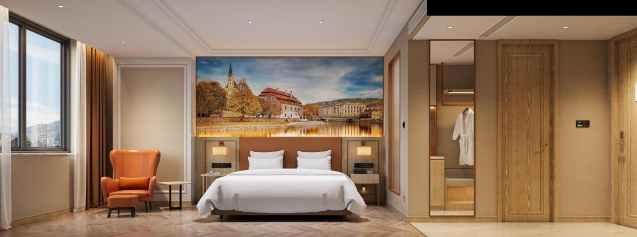 维也纳酒店在睡眠领域投入上千万元研发的“愉梦大床”采用了睡眠黑科技。这款大床柔韧贴合全身曲线,提供亲肤零压零负担的睡眠体验,适合商务出差和旅行选择。该酒店还特别注重空间布局、家具、灯光和色彩等设计,庄园轻居式客房整体空间采用米白+原木色调,融合了简化的欧式线条和装饰,点缀有珊瑚橙色的logo,配备了欧洲南部庄园风情画、多级调节柔和阅读灯、休闲风米橙沙发躺椅和自然呼吸仿木纹地板等,为消费者提供健康又有活力的空间,尤其符合亲子家庭的需求。
