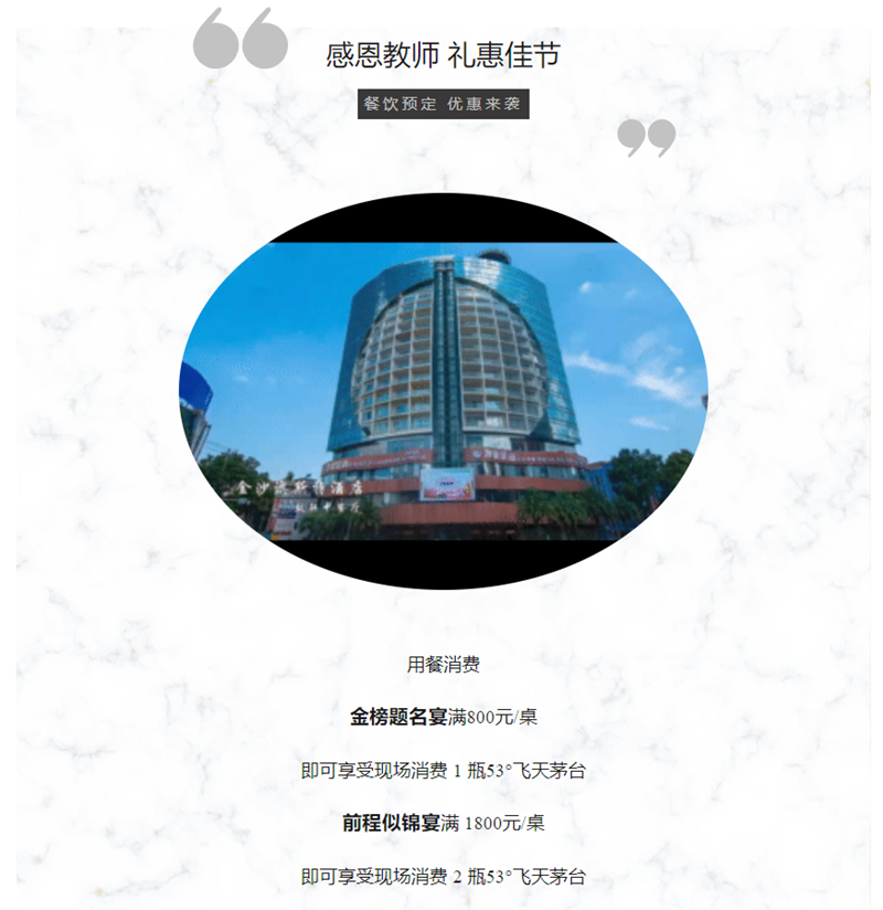 教师节,贵州金沙澳斯特酒店(雅阁酒店集团旗下成员酒店)礼遇。