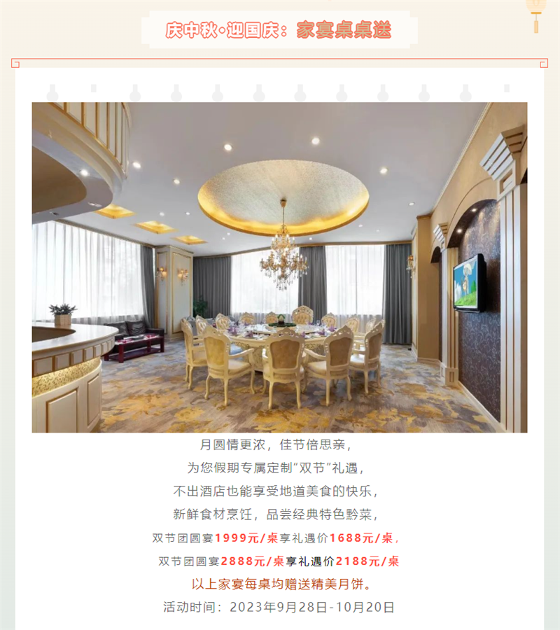 月满中秋欢度国庆,欢迎下榻贵州金沙澳斯特酒店(雅阁酒店集团旗下成员酒店)。