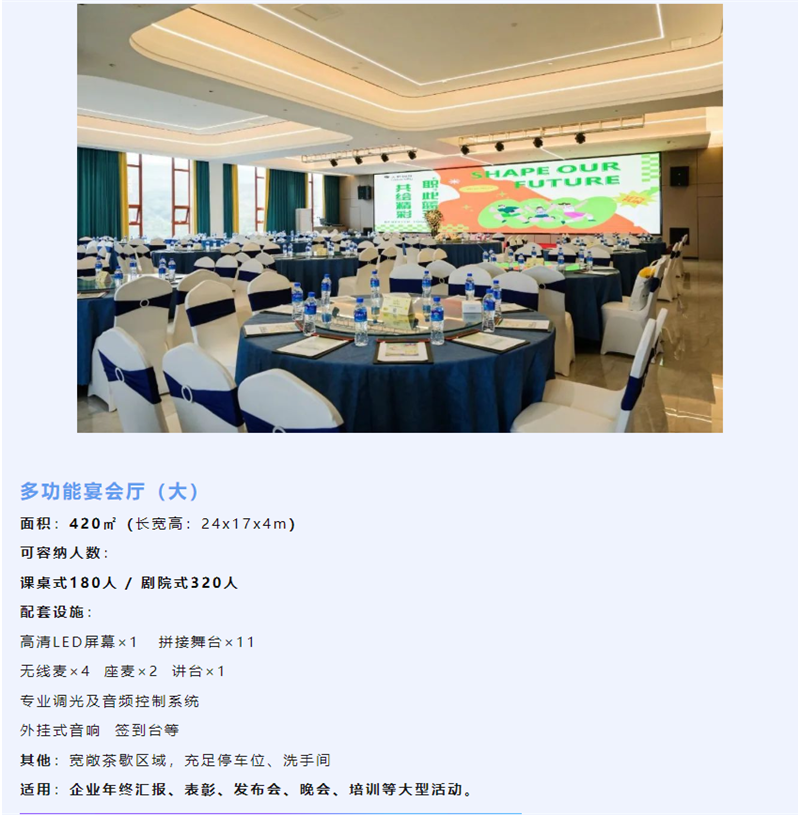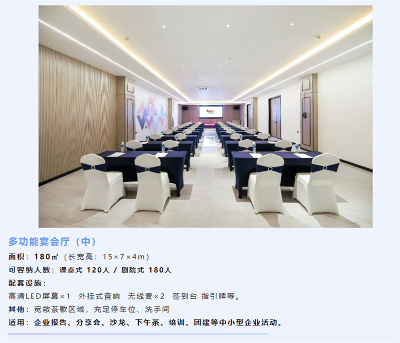 大理庞业雅阁酒店(雅阁酒店集团旗下成员酒店),拥有1个420㎡大宴会厅,1个180㎡多媒体会议室,1个160㎡多功能会议室、以及1个90㎡董事会议室,配备多媒体设备,LED屏,无线宽带网络、会议室用品,会议期间可提供会议茶歇和会议餐等,可满足10人-320人不同层次的中高端宴会及会议需求。