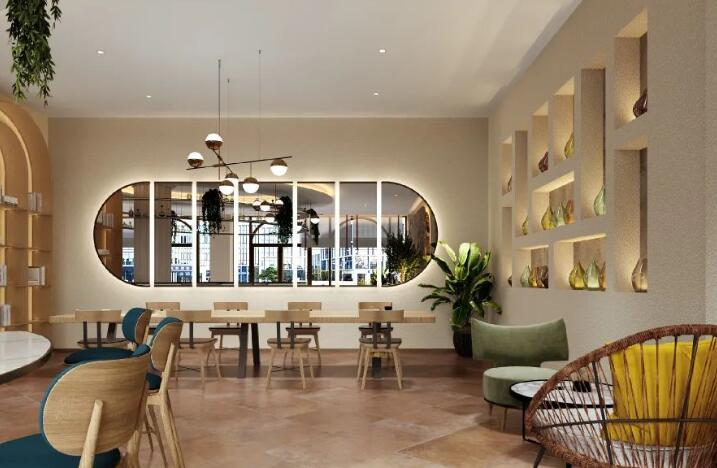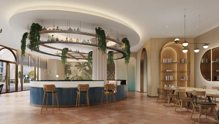 欧暇·地中海酒店通过建筑、空间、体验和内容的结合,成功让人们感受到「暇享好时光」的愉悦。作为当代生活方式的示范地和启发地,该酒店通过无界共享空间的打造,为客人提供了与“地中海”文化、生活方式和其他客人交流互动的机会。同时,特色橄榄吧、暇享畅饮社交区、绿洲海岸打卡区和共享办公区等设计也进一步增加了客人在酒店内的多样体验。