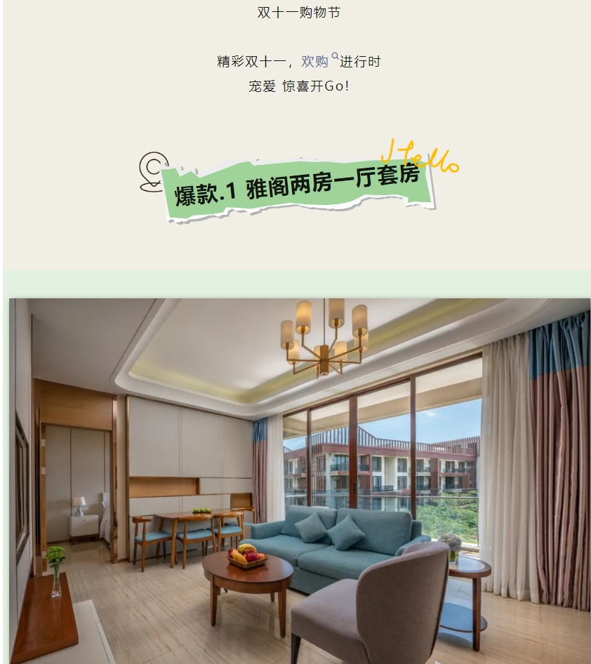 “双11”年终大促特惠度假套餐上线啦,诚意满满,就等你来