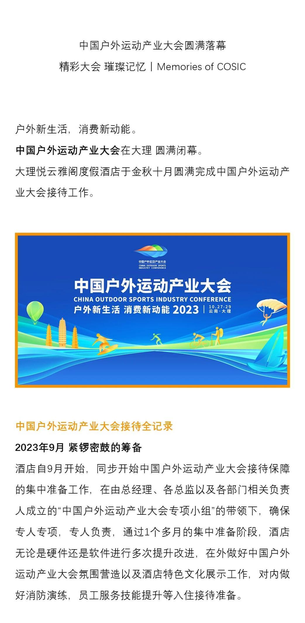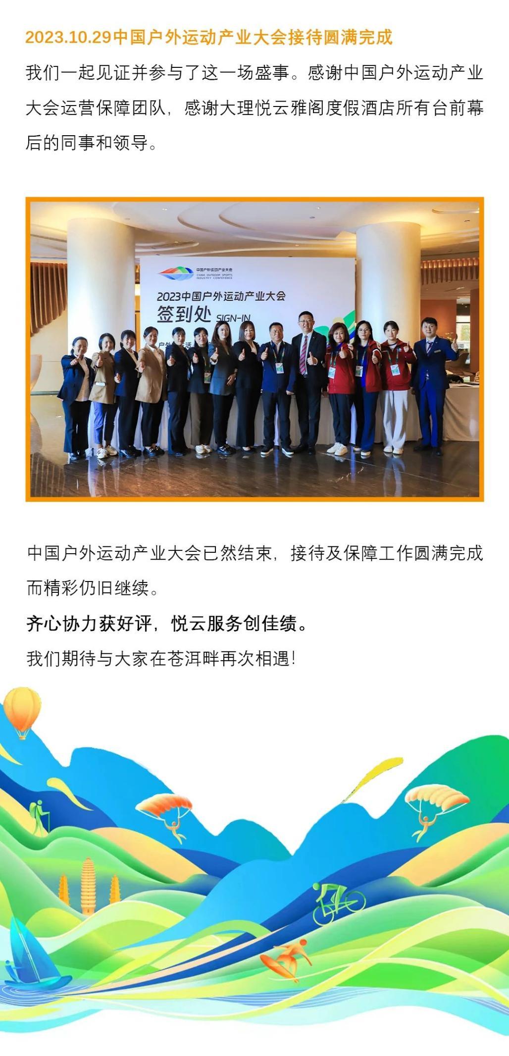 户外新生活,消费新动能,国户外运动产业大会在大理 圆满闭幕,大理悦云雅阁度假酒店(雅阁酒店集团旗下成员酒店)于金秋十月圆满完成中国户外运动产业大会接待工作。