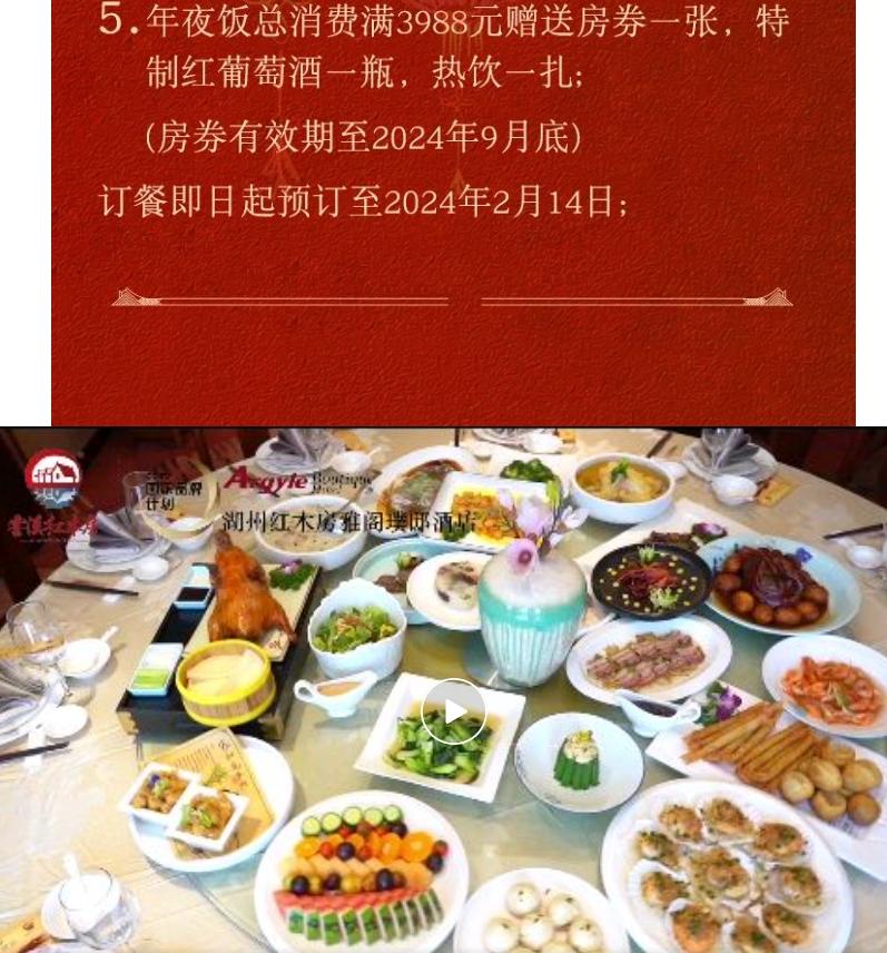 新年年夜饭共品佳肴,尽在浙江湖州红木房雅阁璞邸酒店(雅阁酒店集团旗下成员酒店)。