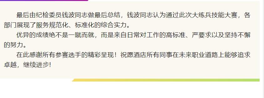 2023年度上海华港雅阁酒店(雅阁酒店集团旗下成员酒店)大练兵技能大赛——持续努力 不懈前行。