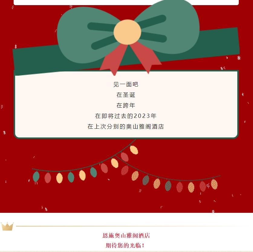 圣诞节快乐,湖北恩施奥山雅阁酒店(雅阁酒店集团旗下成员酒店)邀你一起欢聚。