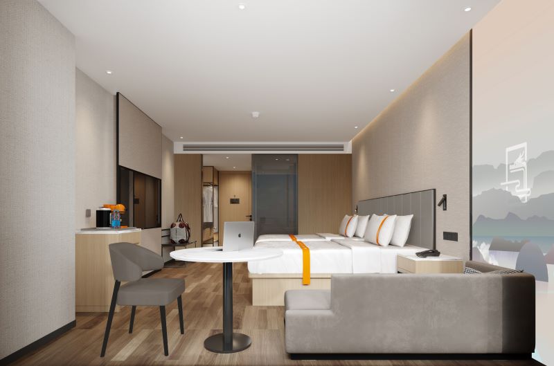 酒店设有一百余间房,商务房、豪华房、禅修房、星空主题房、亲子房、情侣房、套房等,各类客户都能选得心仪空间入住,还能享受全智能黑科技控制系统,口述指令、一秒实现。