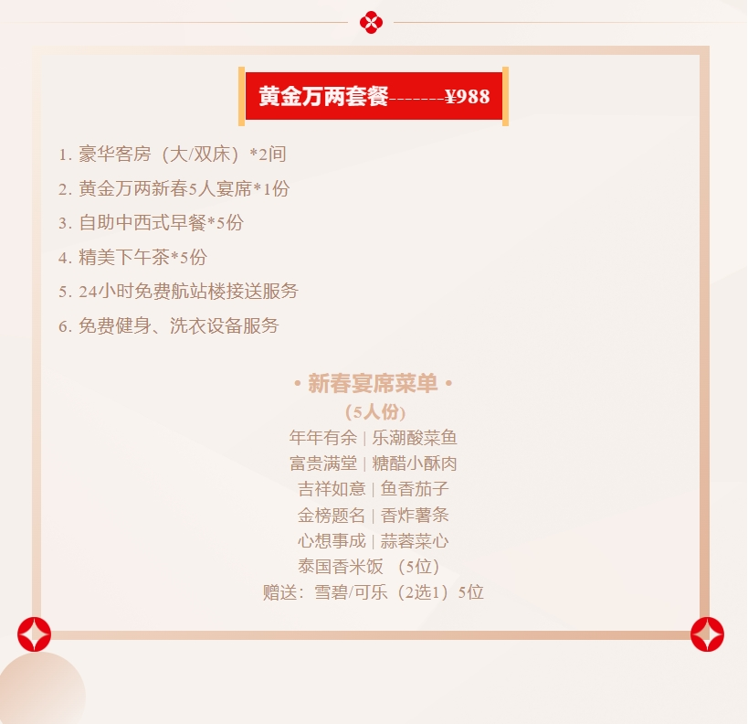 雅阁酒店集团|机场员工限定,新春宴席套餐仅需688元,吃住全包