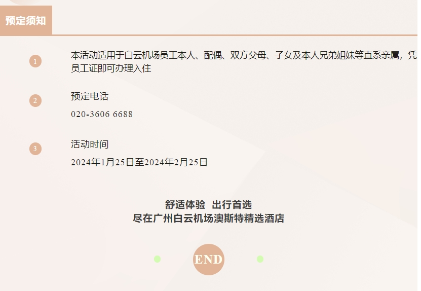 广州白云机场澳斯特精选酒店,雅阁酒店集团(澳大利亚)旗下成员酒店,机场员工限定活动,欢迎来入住。