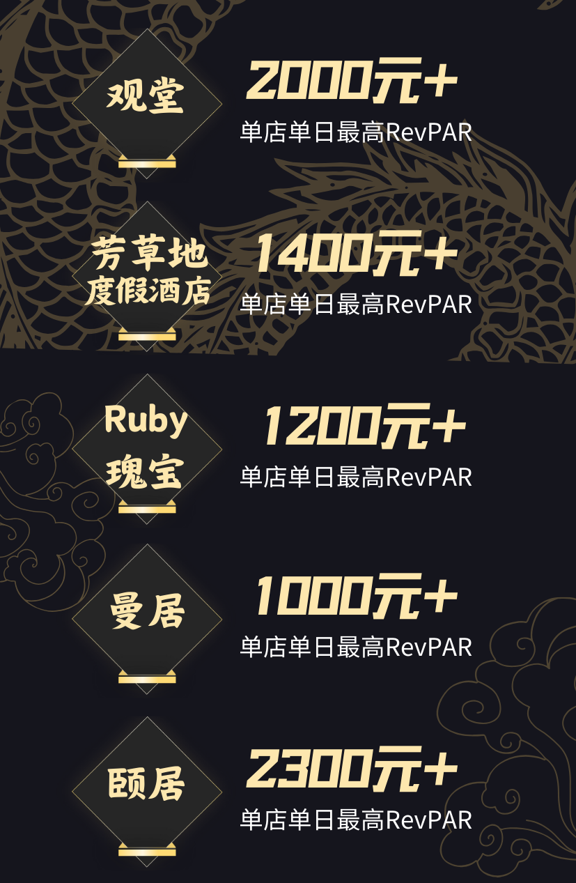 开元名都、开元名庭、方外、观堂、颐居等多个品牌单店最高RevPAR超2000元。