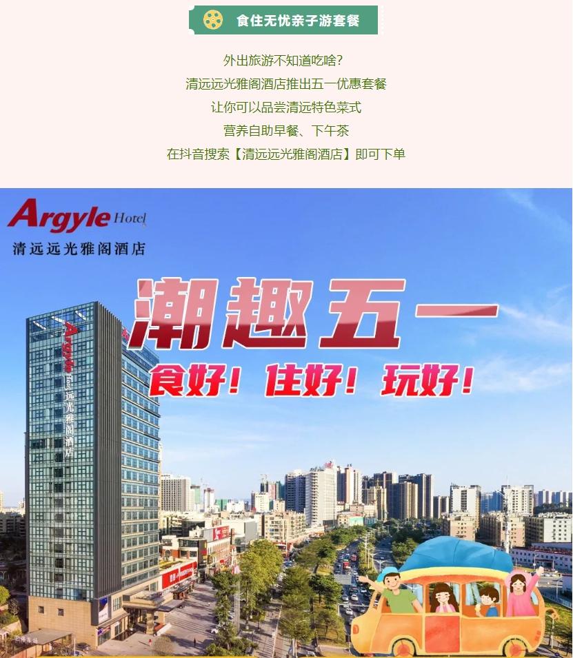“编玩编乐,潮趣五一”畅玩清远特色套餐,尽享欢乐亲子时光。来广东清远远光雅阁酒店(雅阁酒店集团旗下成员酒店),品尝清远特色套餐,尽享欢乐亲子时光!