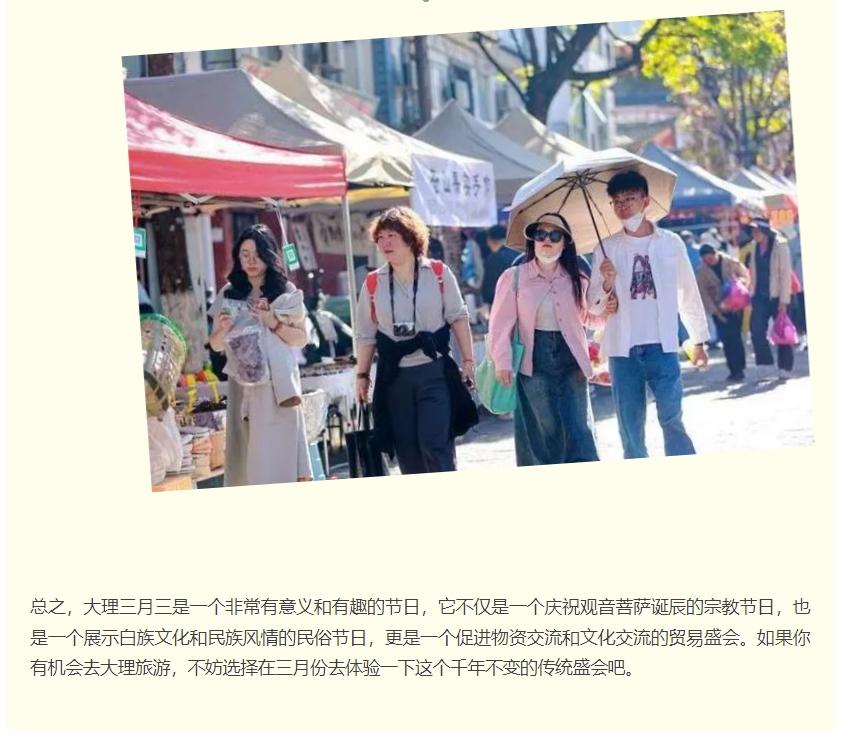 如果你有机会去大理旅游,不妨选择在三月份去体验一下这个千年不变的传统盛会吧。