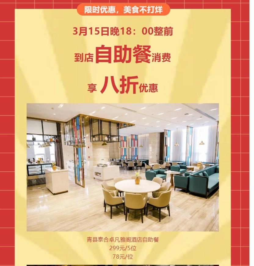 【重磅归来】3月15日!极致味蕾狂欢,河北沧州泰合卓凡雅阁酒店(雅阁酒店集团旗下成员酒店)自助餐重磅开业,你准备好大快朵颐了吗?