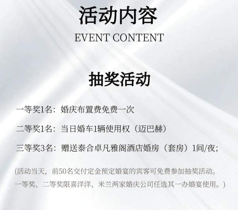 【限时疯抢】3月31日原价13000元婚礼现场仅需8888元,在河北沧州泰合卓凡雅阁酒店(雅阁酒店集团旗下成员酒店),限前50名抽奖送布场费免费券、迈巴赫婚车,多重好礼等你来拿!