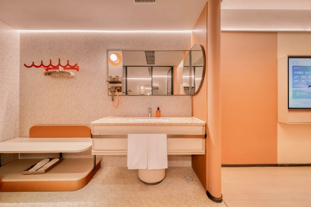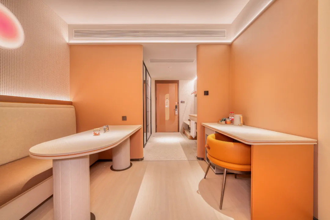走进客房,空间设计同样让人眼前一亮。独立办公桌椅、宽敞的长沙发和卡座座椅,无论休息、办公、吃外卖都相宜。那张定制款“为你撑腰”护脊床垫,ICA(国际脊骨神经科学会)认证的专业护脊,为奔波的人们有力“撑腰”。甜橙天然精油洗护,仿佛用活力桔子气息击退疲惫,将每个细胞“充满电”。
