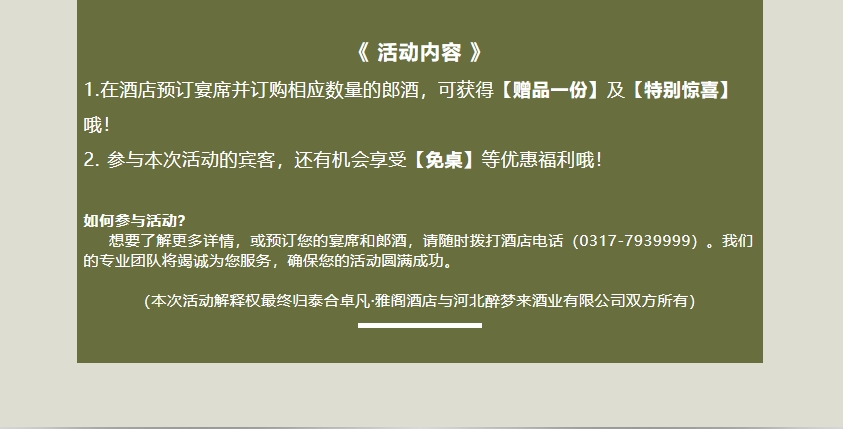 河北沧州泰合卓凡·雅阁酒店(雅阁酒店集团旗下成员酒店)与郎酒的这次合作