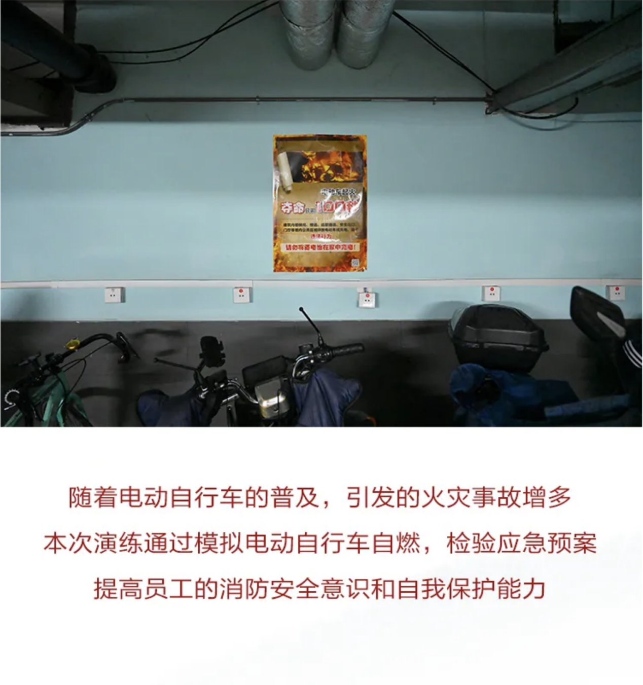 随着电动自行车的普及,引发的火灾事故增多。本次演练通过模拟电动自行车自燃,检验应急预案,提高员工的消防安全意识和自我保护能力。