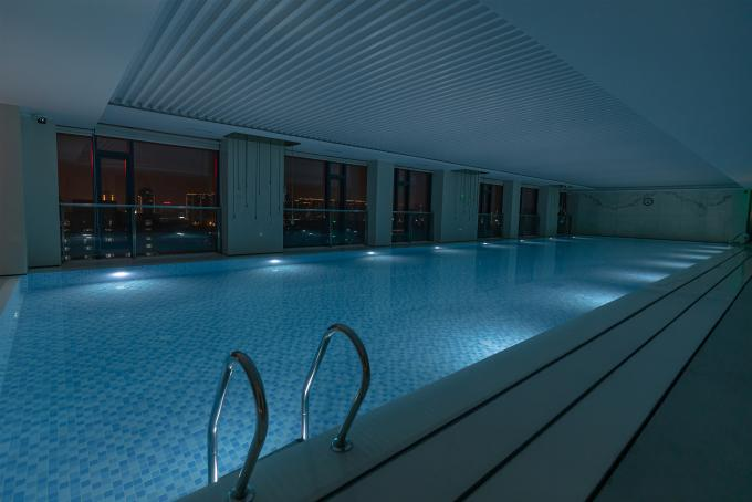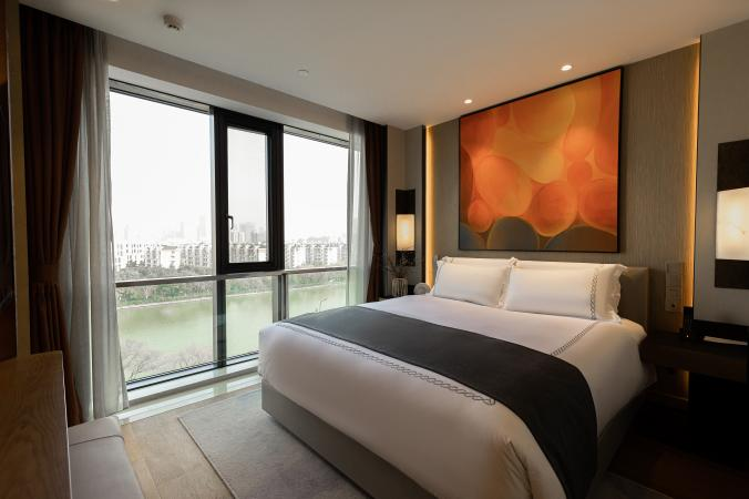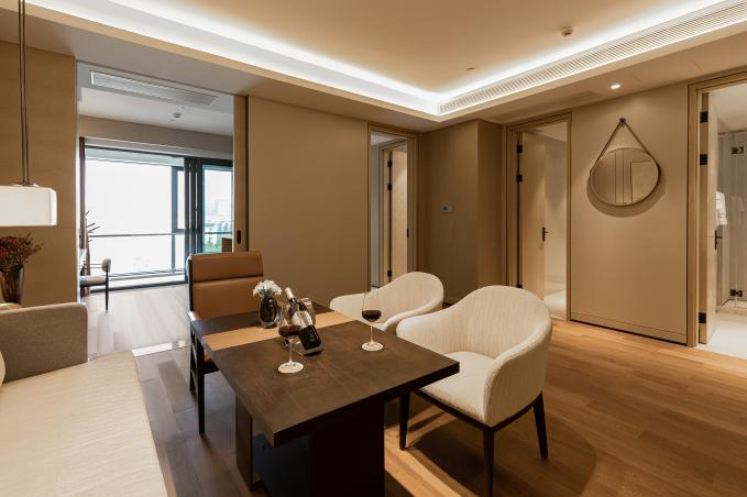 霁月家庭房及亲子套房,面积在105平米,每套客房均提供设施齐全的厨房、洗衣机,用餐区、客厅及卧室功能分明区,健身中心及室内恒温泳池一览城市景色。