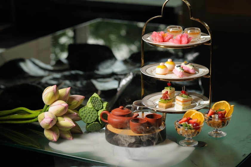 本次新品下午茶以清雅绝尘的荷花为主题,精心挑选了多款精致的点心与茶饮。每一款甜品都经过厨师团队的巧手制作,无论是甜而不腻的「荷花酥」,还是口感细腻的「荷花白巧克力樱桃慕斯」,都蕴含着对传统美食的尊重与创新。
