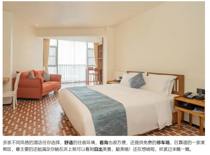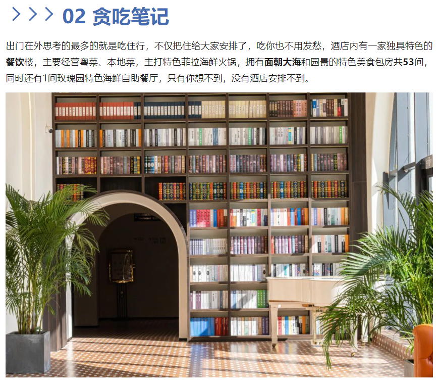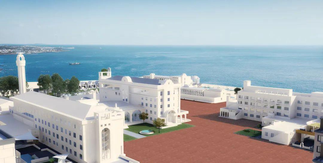 这是一家综合性的旅游度假区,占地25万平方米,设有餐饮、住宿、文旅、康养、娱乐等项目,将浓郁的希腊圣托里尼海湾风景与时尚现代融为一体,适宜全年龄段、全方位人群体验。