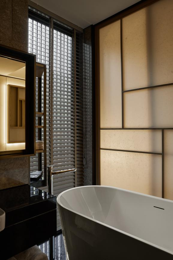 将良渚文化,藤编、造纸、压纹等传统工艺运用在客房空间里