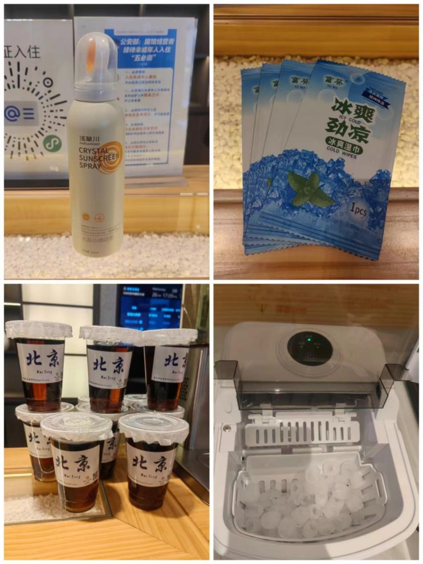 另外,旗下多家门店设计推出暑期贴心服务,比如朗丽兹酒店北京中关村壹号永丰南地铁站店提前为每位入住的客人都准备了新鲜熬制的冰镇银耳莲子汤,为顾客消暑降温;朗丽兹酒店北京中关村苏州街店为顾客准备了防晒雾、酸梅汤、湿巾等物品,为顾客打造舒适的住宿体验。