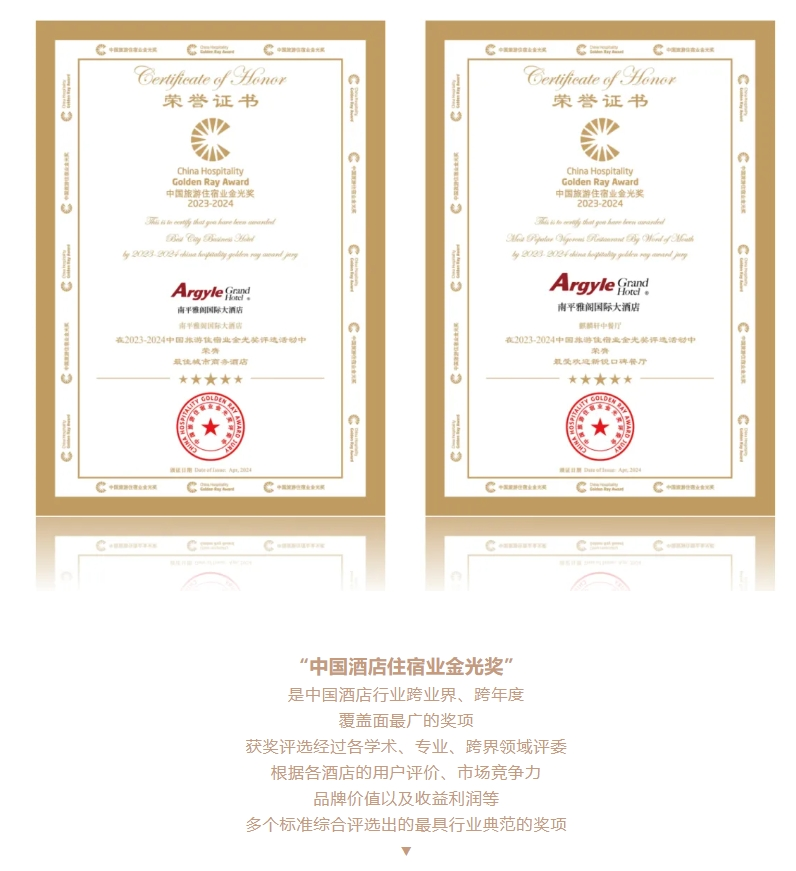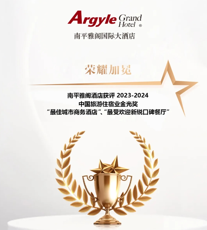 雅阁酒店集团|南平雅阁国际大酒店荣膺金光奖双重殊荣