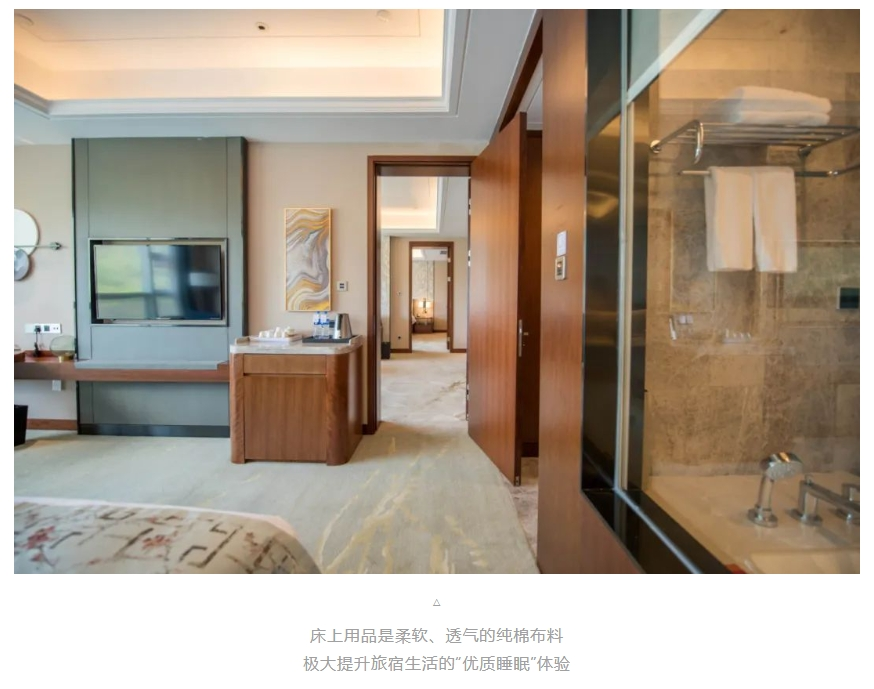 酒店采用单廊式走廊,面积均超48平米,落地窗全景临江,视野开阔