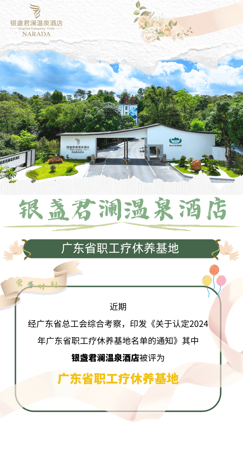 喜报丨银盏君澜温泉酒店被评为广东省职工疗休养基地
