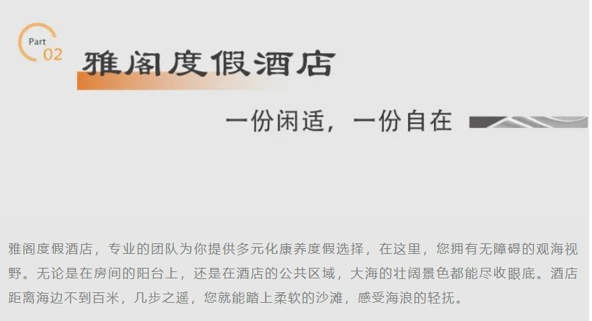 大美秦皇岛,欢迎下榻雅阁酒店集团成员酒店秦皇岛雅阁高端度假酒店群(秦皇岛雅阁度假酒店、秦皇岛雅阁璞邸酒店、秦皇岛澳斯特酒店)。