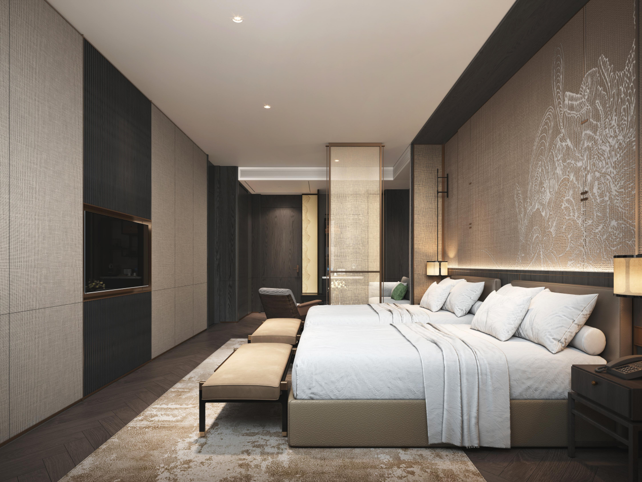 酒店将宋韵文化与建筑园林的有机结合,取自然材料,配以景观,细密竹林,凝聚成一股沉潜、宁谧的禅修之气,书写独具东方禅意的建筑美学,做到文化、自然融为一体的效果。