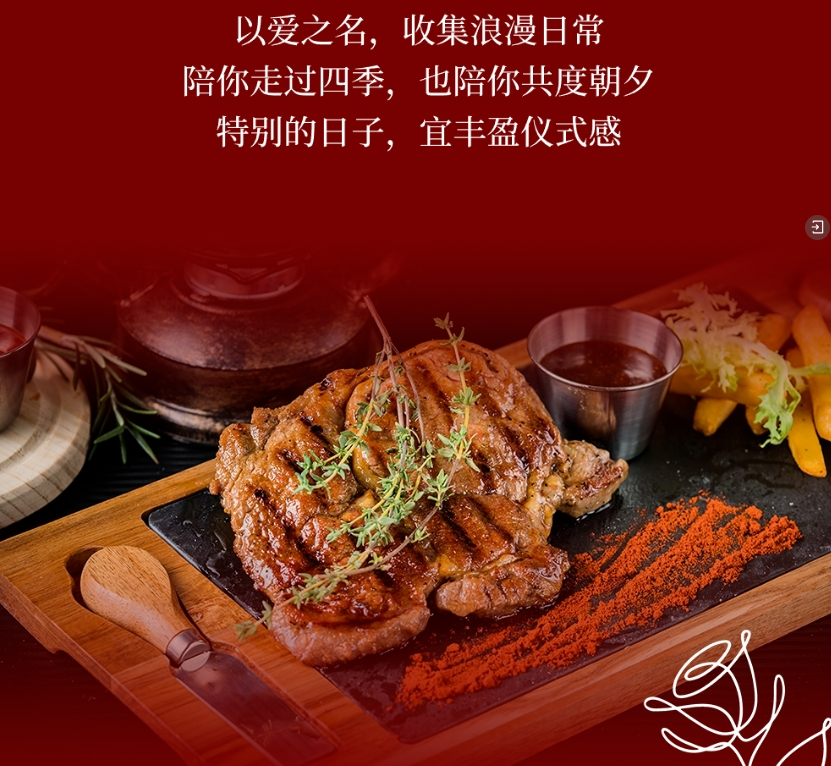 以爱掌勺呈献七夕珍馐鲜嫩的牛排,搭配一杯丝滑的红酒