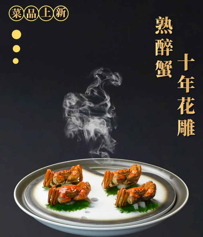 十年花雕熟醉蟹,是一道融合了传统工艺与醇厚美酒的珍馐佳肴。在经过一段时间的浸渍,醉蟹完美融合了花雕酒的醇厚、香料的辛香以及螃蟹自身的鲜美。一口咬下,先是花雕酒的馥郁香气扑鼻而来,随后是蟹肉的鲜甜在口中散开,口感鲜嫩多汁,余味悠长。