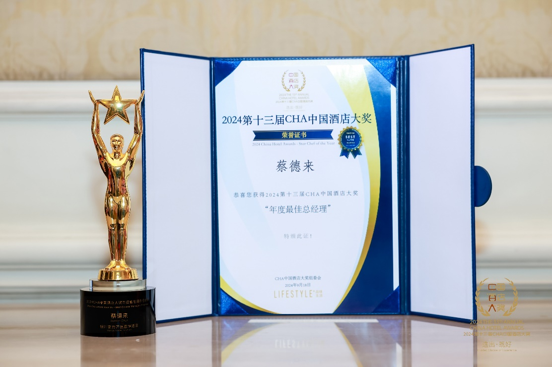 蔡德来先生毕业于马来西亚泰莱大学的法国酒店管理系,后续在美国著名的明尼苏达大学完成工商管理硕士学位。蔡德来先生拥有30年丰富的酒店运营经验,在酒店餐饮、客房、市场销售、运营管理等方面均有丰富管理经验,是一位全方面的管理人才。多年来,凭借着精益求精的工作态度,蔡先生积累了丰富酒店筹开、运营管理经验,并在任职期间带领团队创造出无数次的业绩历史记录,带领酒店在当地市场取得业绩与口碑的双丰收,本次蔡德来先生以其卓越的领导力和对酒店运营服务的不懈追求,赢得了「年度最佳酒店总经理」的殊荣。他的获奖,体现了其在酒店管理领域的卓越才能和对服务细节的精益求精的精神。