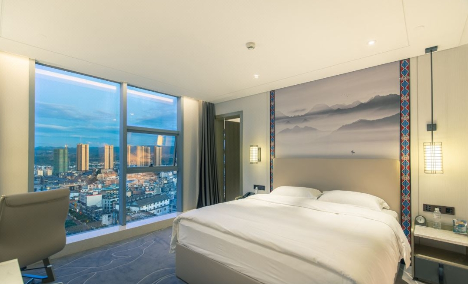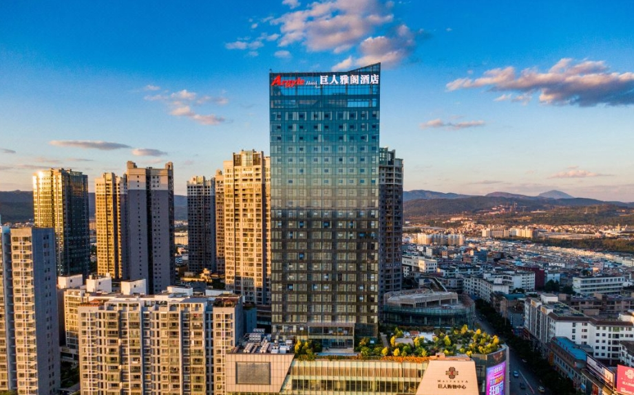 云南弥勒巨人雅阁酒店(雅阁酒店集团旗下成员酒店)楼体为全景玻璃幕墙,所有房间均能纵览城市美景。作为弥勒一家集商务、休闲度假为一体的国际品牌星级酒店,拥有各式客房共两百余间,包括三十余间套房、亲子楼层和行政楼层。