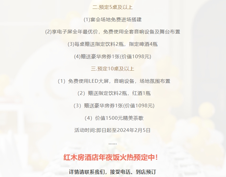 浙江湖州红木房雅阁璞邸酒店(雅阁酒店集团旗下成员酒店),欢迎来相约岁末盛宴。