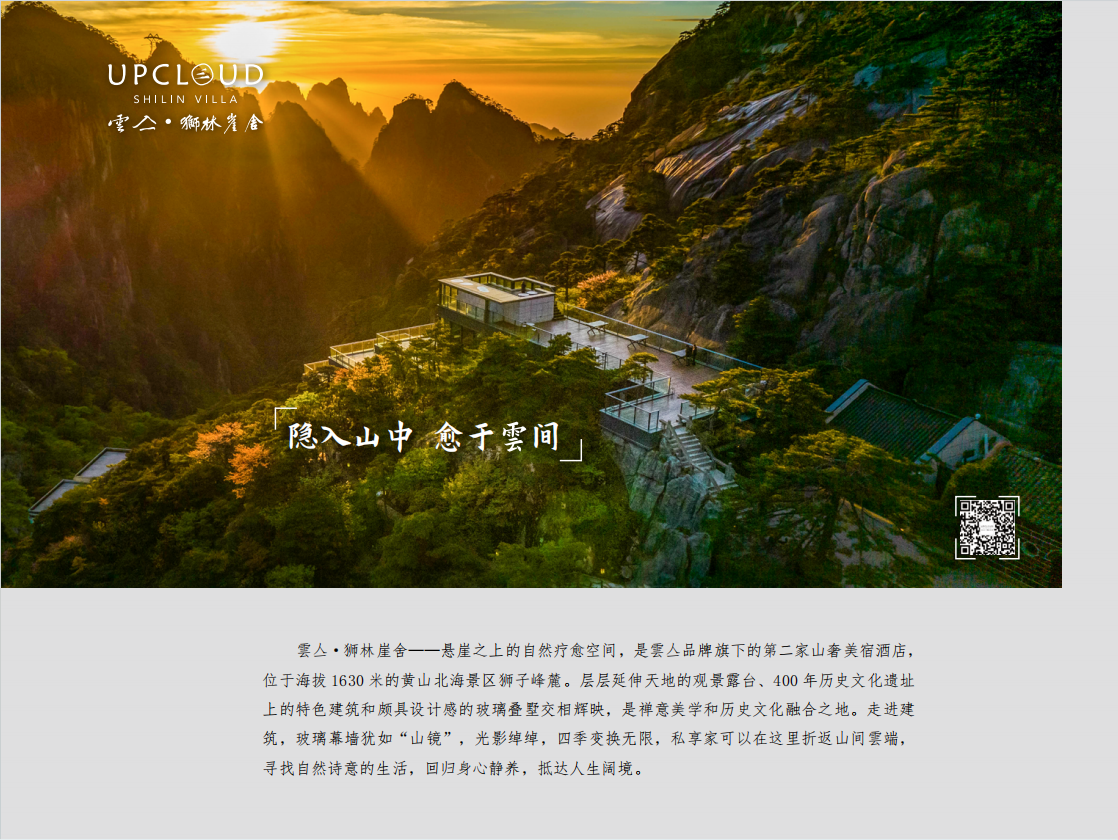 黄山旅游雲麓酒店管理有限公司,创建于 2021 年 4 月,是黄山旅游发展股份有限公司的全资子公司,负责运营黄山旅游起步于上世纪50年代的酒店板块业务,也是中国山岳型旅游目的地首个系统构建酒店品牌的酒管公司。运营着“雲麓”品牌矩阵下雲人、雲麓、雲野、雲颐 4 个合集品牌,涵盖轻奢、豪华、高端、中端 4 个端位,致力于中国山林度假生活方式和深度情感化体验的极致打造。