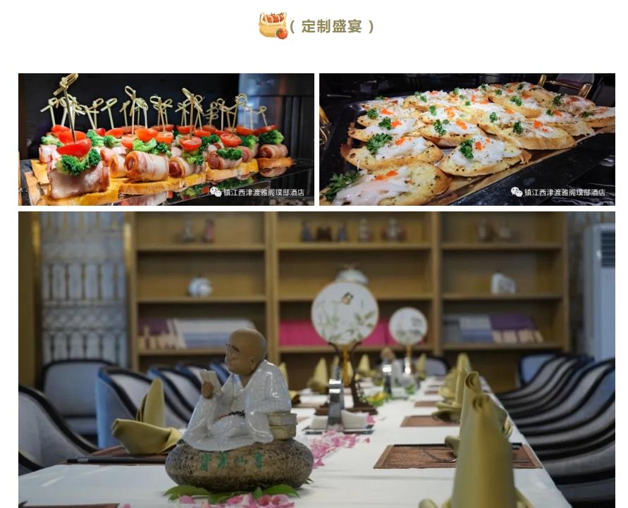 江苏镇江西津渡雅阁璞邸酒店(雅阁酒店集团旗下成员酒店)优雅的用餐环境,精致的餐具摆盘,精美的茶歇,多元化的菜单。精湛的中西料理厨师团队,将各种新鲜食材的美味发挥到极致,精心为您制定年终美味盛宴。