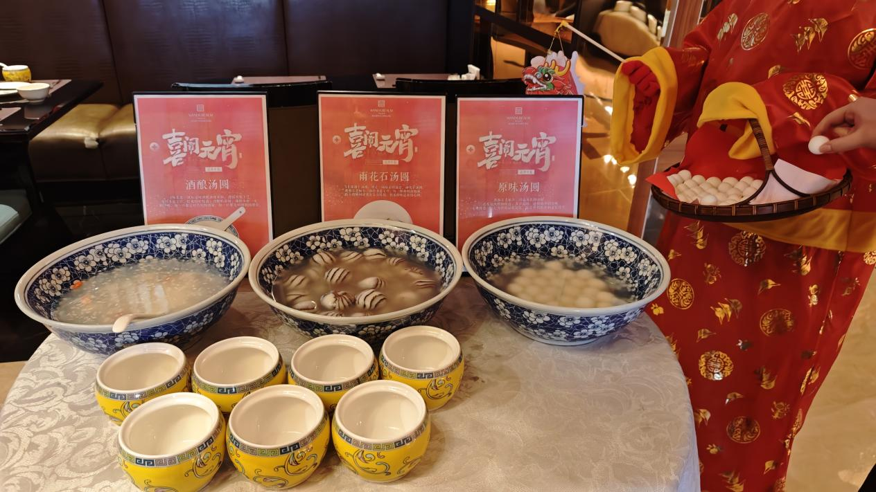 美食汇全日餐厅提供特色早餐,餐厅特别派送极具特色的雨花石汤圆和酒酿汤圆。雨花石汤圆,宛如一件件精美的艺术品,色彩斑斓的外皮包裹着软糯香甜的馅料,入口即化,每一口都仿佛在舌尖上演绎着一场甜蜜的舞蹈。酒酿汤圆则是酒香与米香的完美融合,清甜的酒酿汤汁搭配软糯的汤圆,暖身更暖心,每一口都饱含着浓浓的节日祝福。