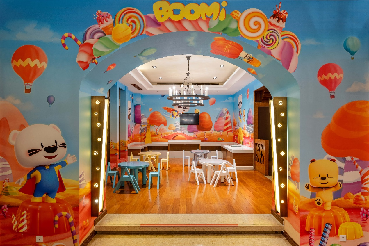 以萌熊BOOMi(布迷)为主题的童趣房,用活泼的黄色为主色调,走进房间,除了墙纸、床单、枕套充满布迷的元素以外,更特别增添了布迷靠枕、儿童漱口杯及儿童毛巾和玩具,连小朋友的浴袍和拖鞋都印有布迷的图案,为小朋友的度假生活增添趣味及仪式感。