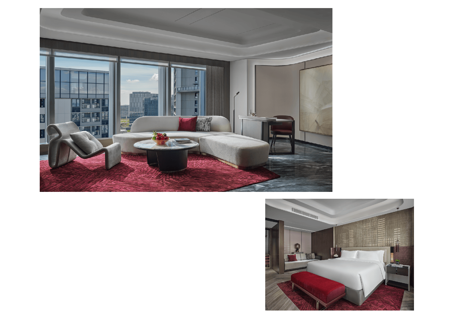 房间以城市变迁及活力为主题,宽敞明亮的空间布局让人瞬间忘却疲惫