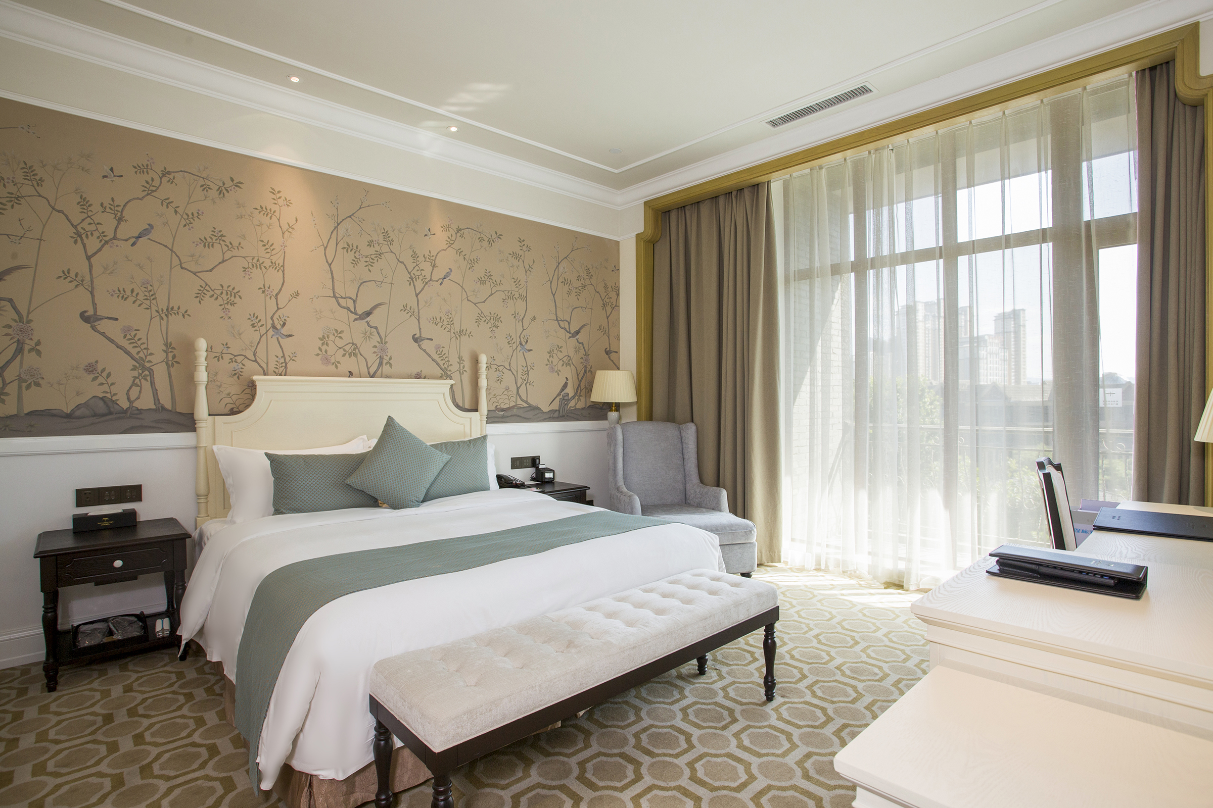 酒店拥有138间高品质客房,每一间都配备了现代化的设施,如免费无线上网、24小时空调等。房间设计现代时尚,采用轻奢风格,营造出舒适的住宿体验。部分房间还设有阳台,让你可以在房间内欣赏到美丽的城市景观。