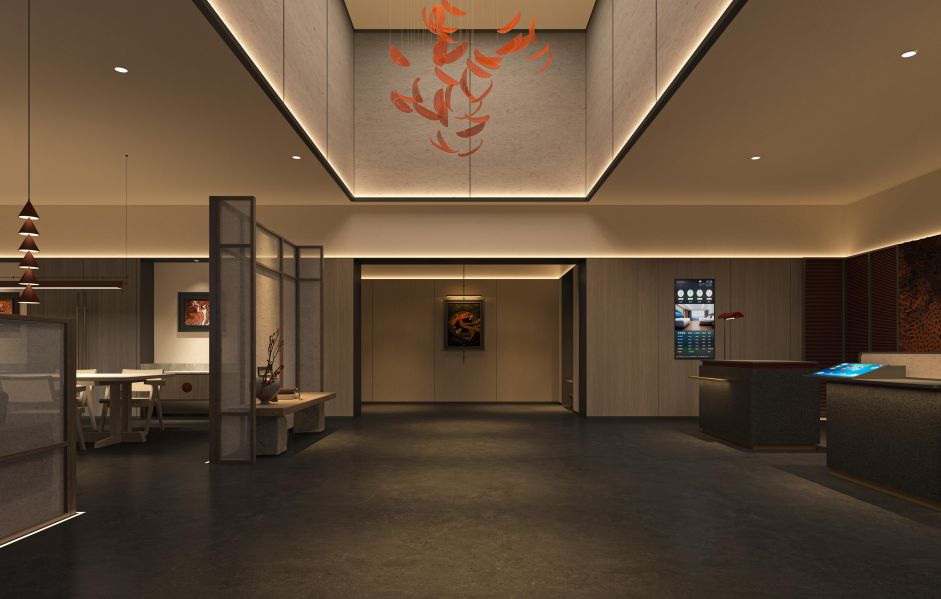 大堂空间摒弃传统隔断,以开放流畅的线条重构空间秩序,营造“一步一景”的沉浸式体验。