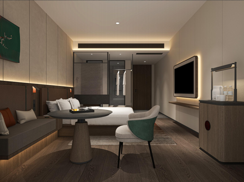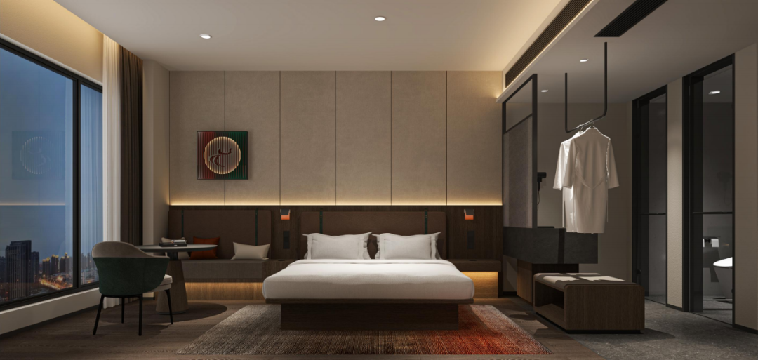 客房则以“轻中式生活美学”为核心,通过禅意家具、智能科技与属地文化符号的交织,让旅人感受“干净、安静、素雅、纯粹”的东方待客之道。