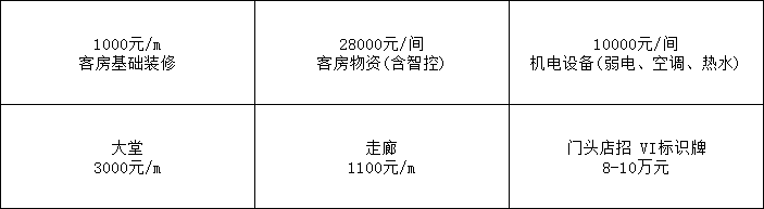 *单店综合造价控制在7.5万元/间
